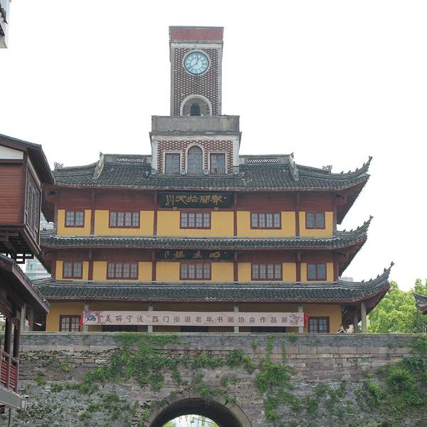 宁波鼓楼也叫做海曙楼,是宁波市仅存的古城楼遗址。它的下部是中国传统的城楼样式,城楼之上却是罗马风格的钟楼,中西合璧的造型别具一格。如今宁波鼓楼周边是一片仿古步行购物区,油赞子之类的宁波特色小吃值得一尝。 如今,宁波鼓楼及附近的公园路一带已成为宁波主要文化活动的聚散地,楼内时常会举办画展、书法展、照片展。道路两旁是仿宁波传统建筑风格的商店,小青瓦双坡屋面、风火马头墙,还有各种精细的外墙木装饰,既具有宁波传统商业街的风貌,又具有强烈的历史文化质感。 在东西两端入口处的两座古石牌坊,以及城墙遗址、子城历史变迁的石碑、宁波鼓楼附近的永丰库遗址公园,可供你仔细品读宁波的历史。到了晚上,宁波鼓楼一带人气很旺,景观灯亮起时格外适合拍夜景。