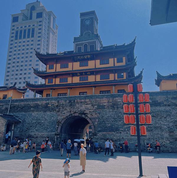 鼓楼现在最显眼的就是镇海楼,这是个城楼,有几百年历史了,行人车辆都要从城楼下穿过。现在的鼓楼是一条商业街,许多外地游客都来这里,有许多小店和小吃,也有正宗的当地菜可以品尝。镇海楼旁边有永丰库遗址,这是江南地区比较少见的元代建筑遗址,保护的比较完整,能看出来整个仓库的规模。