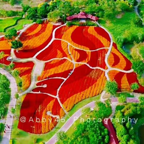 园博苑一年四季有不同花海,春季郁金香花展、油菜花、虞美人;夏季荷花、秋季6000平方米的凤尾鸡冠花竞相绽放,主题为“凤凰涅槃”,红、橙、黄三色凤尾鸡冠花根据凤凰图样进行种植,鲜艳夺目,给人以强烈的视觉冲击,冬季落羽杉 展开