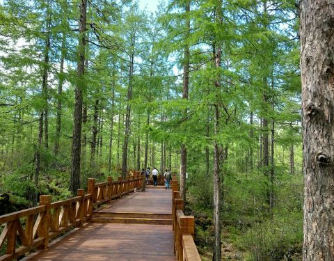 到阿尔山市之后再打车或包车前往景区,森林公园内有景区交通开往各个景点。