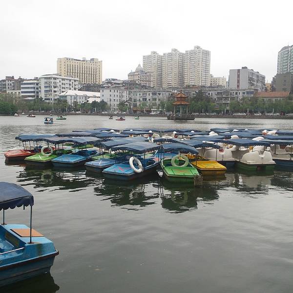 就在市中心的区域,周围很多商区,我也是吃完饭在附近溜达,经过一排门面房突然就出现了一个漂亮的湖!