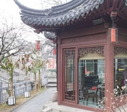 ...庙景区旁边,穿过一个小区,看见一个茶字旗子,旁边的门楣上写着桃叶渡,推开半闭的门进去,别有洞天