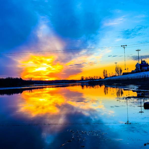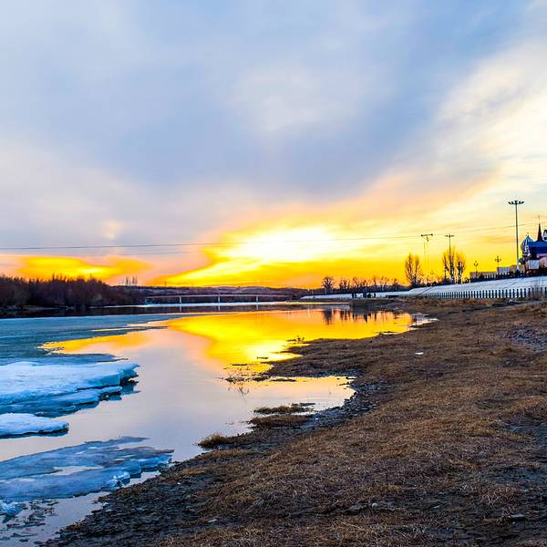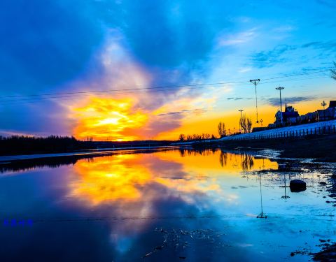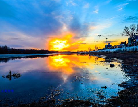 额尔齐斯河的河岸两边在夏秋之季也是美景不断,虽然刚刚是过了春分,但是这里落日余晖也是很好看的。