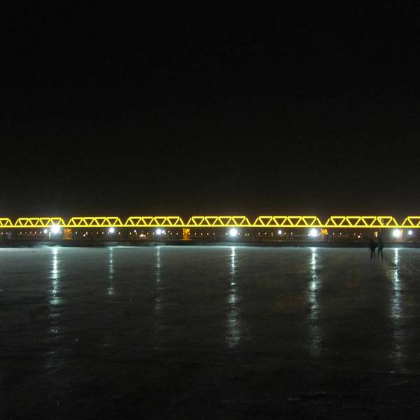 松花江流经哈尔滨市区的这一段,早已成为这座城市的重要景观。每到冬季,冰封的江面上便成了人们的游玩胜地,可以在江上体验坐马车、玩雪圈儿等活动,而夏季的松花江畔也是人们纳凉散步的好去处。 松花江是黑龙江较大的支流,东北地区的大动脉,本身也有两条主要支流。其一为源于白头山天池的第二松花江,另一为源于小兴安岭的嫩江,两条支流在扶余县汇合始称松花江,折向东北流至同江县注入黑龙江。 在冬季,冻得结结实实的松花江冰层大约有半米多厚,冰面上可以走人和马车,有积雪时踩上去软绵绵的。哈尔滨市内的这段江面宽约100多米,在靠近防洪英雄纪念碑的江面上有滑雪圈、滑冰道、打冰嘎、开雪地坦克、骑冰上自行车等游乐项目,大人小孩都可以体验。