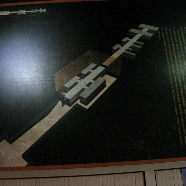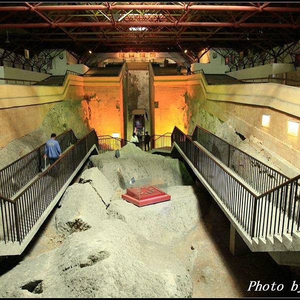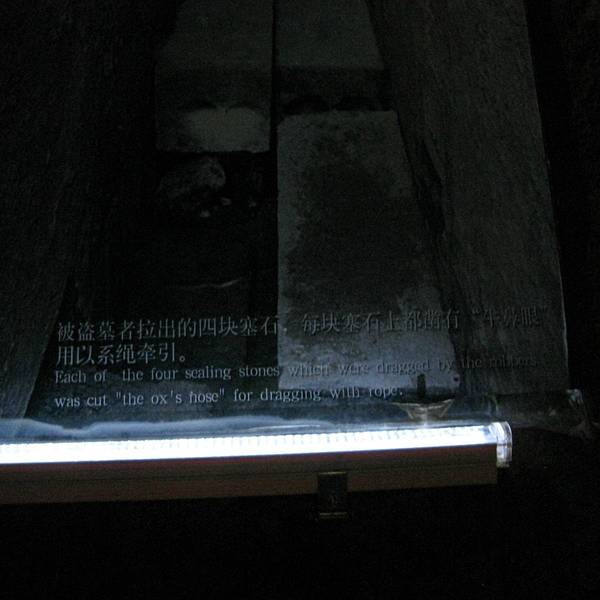 展厅内灯光挺暗的,进去的时候(与地面同高度的部分),一周是介绍该王陵的,由于灯光太昏暗了,而且展板又大,很难看的清楚上部的文字——建议馆方予以改进。也提醒大家最好带个手电。