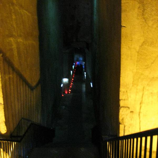 其实墓道里也挺暗的,不过下墓道时设了栏杆,安全一些。
