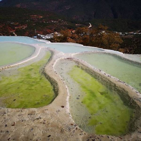 白水台规模感觉比土耳其的棉花堡小很多,但是,真的真的很美,一月初的香格里拉真的挺冷的,也就大概零下几度到十几度的样子,哈哈哈,别人都穿着羽绒服,真的是有点冷!不管你是什么来,都要带厚衣服,不然你会冷的无法抗拒。