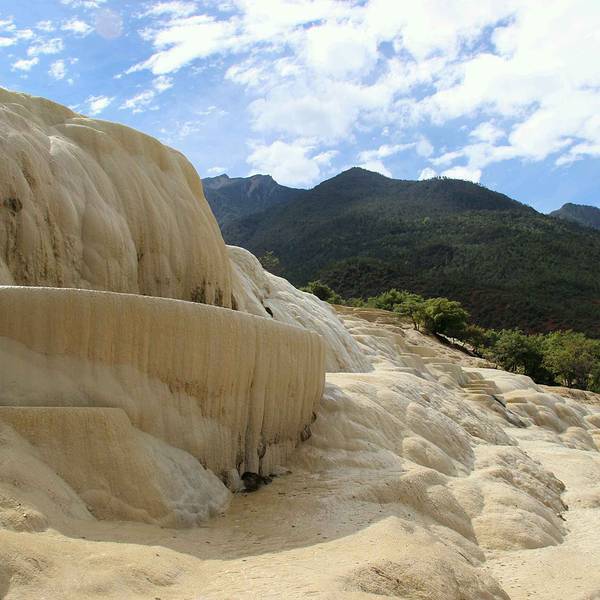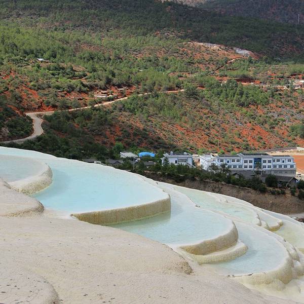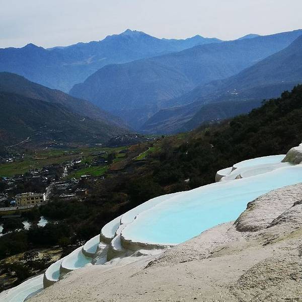 白水台是纳西东巴教的圣地,层层叠叠的白色华台,仿佛一片白色的梯田,非常壮观。
