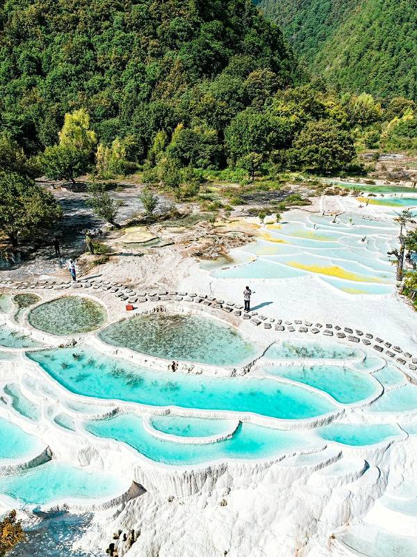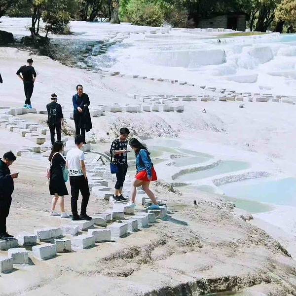 5⃣️白水台的地貌是碳酸钙沉积而成的,只能沿着景区修好的路走,千万不要擅自踏进碳酸钙沉积区,注意保护环境,让美景可以长久地留存!