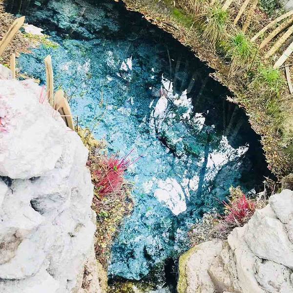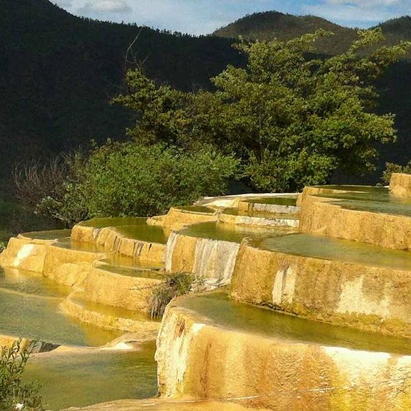 2⃣️刚进景区大门的几级水池,是模仿白水台的形式人工修建的,不要失望,继续往上走,惊艳的在后面。