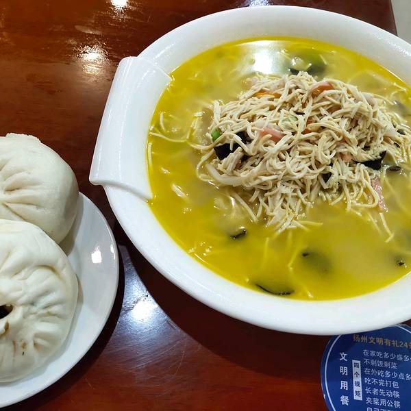 虽然毛牌楼的名气没有三春那么响,但扬州的早茶在旅游旺季还是很多人。昨天点的是烫干丝,今天点了份大煮干丝。