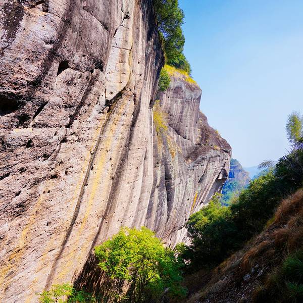 虎啸岩位于二曲溪南,在玉女峰和一线天的中间,是武夷山的南线知名景点之一,“虎溪灵洞”4个大字高勒于岩上。“虎啸”之说,来自岩上的一个巨洞,传说风穿过洞口,便发出怒吼,如同虎啸,所以叫做虎啸岩。虎啸岩一般都和一线天放一起游玩,从一线天出来后就是虎啸岩。它是整个武夷山景区中可与天游峰的陡峭惊险程度一较高下的地方,但登高后的美景也会让你觉得不虚此行。虎啸岩的景点有好汉坡,听名字就可想而知的难走。确实,走上去会有点累,岩阶旁边就是悬崖,台阶又比较窄,在人多的时候不太好停下休息,需要一直往前。虎啸岩的终点是定命桥,但这不是高点,离定命桥不远有一处观景台,是虎啸岩眺望山川视野好的地方,可以看到武夷三十六峰的面貌。另外,说到虎啸岩一般都会想到的虎啸八景,不妨寻找一下,不过现在已经很难找全了。下虎啸处还有景点天成禅院,就位于虎啸岩的崖下,深山藏古寺的感觉还是很好的,可以一同游览。
