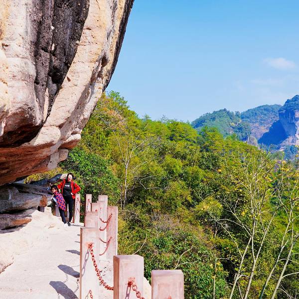 金骆驼 你可以站在挨着定命桥的观景台看风景,这里是虎啸岩的最佳观景的地方。我想这是虎啸岩景区内最大的景点了虎啸岩也是武夷山景区内的景点之一,同样也是需要攀爬的一座山。虎啸岩距离一线天景区很近,我第一个景点是去的一线天,每个景区之间都是互通的,由于不想原路返回就直接从一线天里面徒步到虎啸岩的,当然每一个...虎啸岩也是武夷山景区内的景点之一,同样也是需要攀爬的一座山。虎啸岩距离一线天景区很近,我第一个景点是去的一线天,每个景区之间都是互通的,由于不想原路返回就直接从一线天里面徒步到虎啸岩的,当然每一个景区你都可以按原路返回坐景区内的观光调度车。