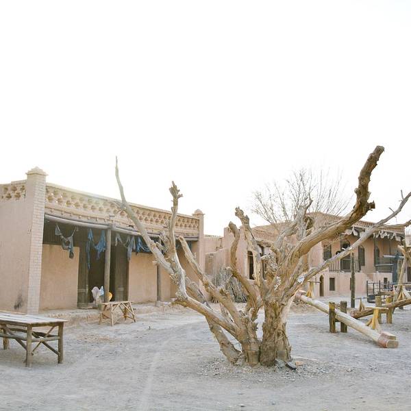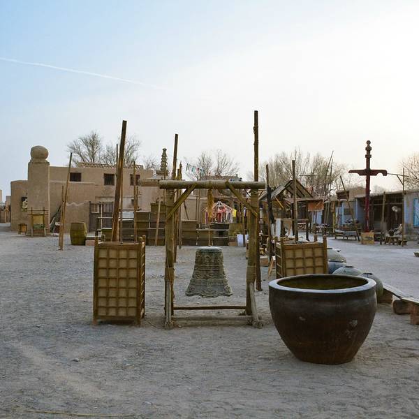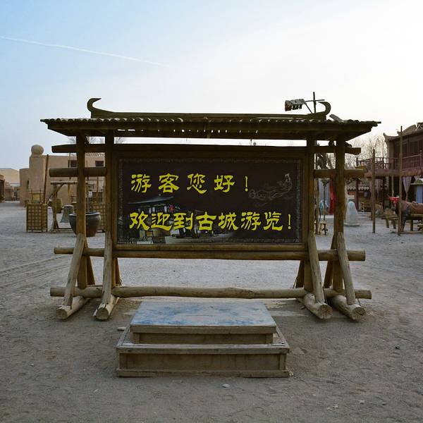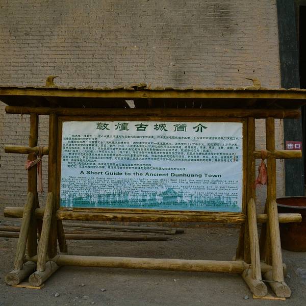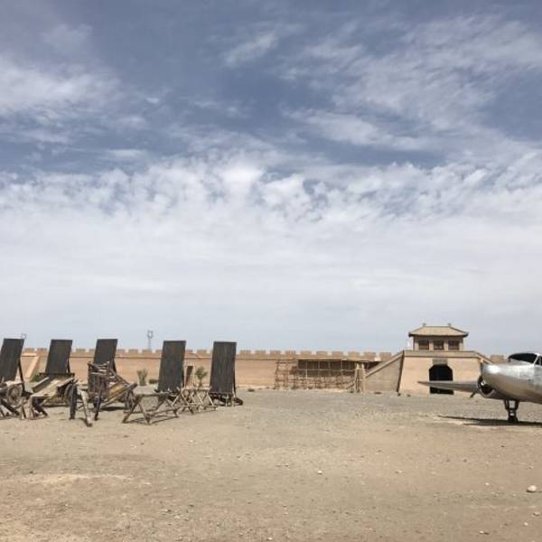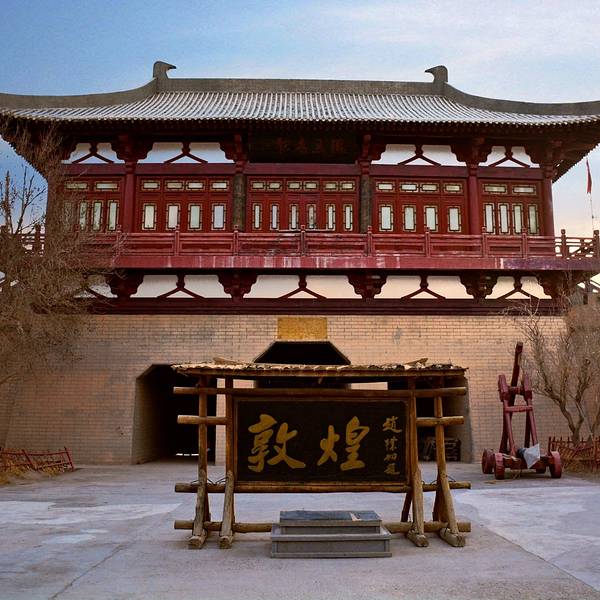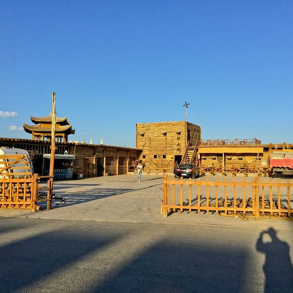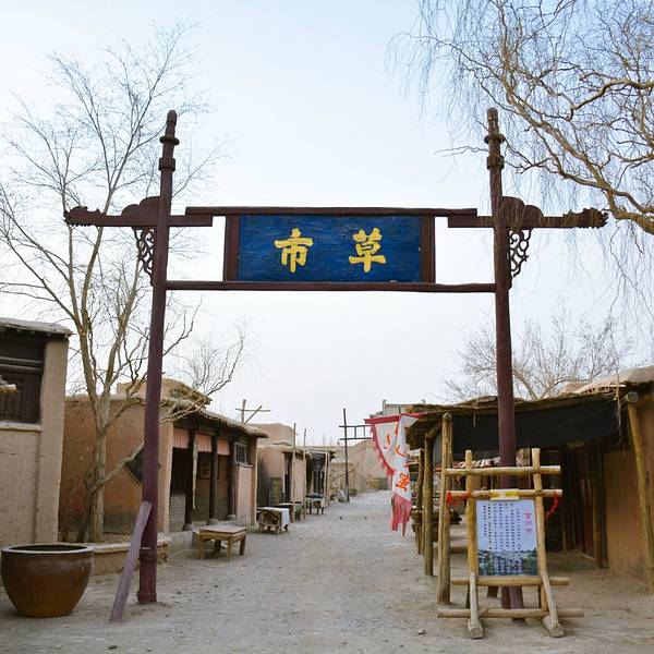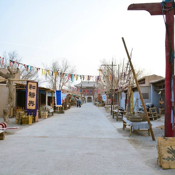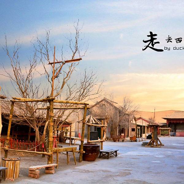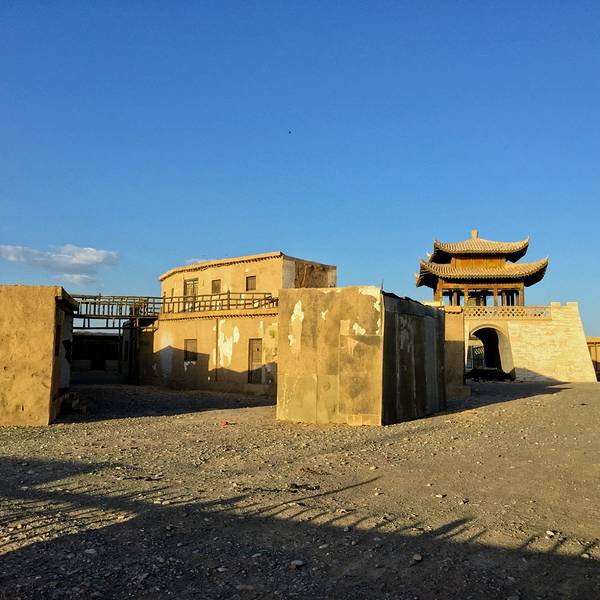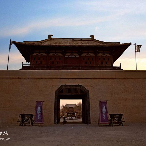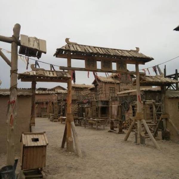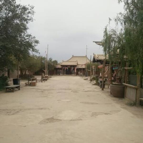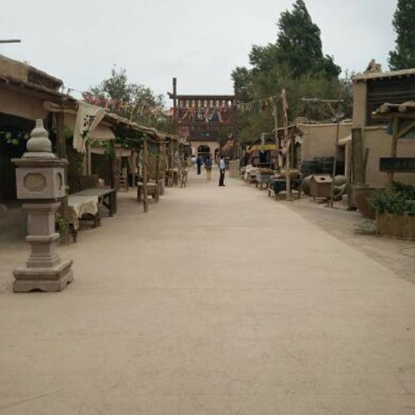敦煌影视古城又称敦煌影视城、敦煌古城,位于敦煌市区西南侧,距离市区车程约16公里,是游客游玩敦煌西线上的一处重要景点,一般和玉门关、阳关景区、敦煌雅丹国家地质公园一起一日游玩。影视古城是1987年中日合拍历史故事片《敦煌》时仿造宋朝沙州古城建设,后来又成为《封神演义》、《新龙门客栈》、《奔跑吧兄弟》等众多影视剧和综艺节目的取景地。游客可以来此欣赏西北风情的古式建筑、街道,拍摄古风的照片,也可以细心寻找,发现众多节目中熟悉的场景。敦煌古城的面积不大,长宽大约都有几百米,进入后步行游览即可。一般步行走一圈下来大约1小时即可走完,而且这里并不像其他古城那样有很多店铺可逛,主要都是用来拍影视剧的屋舍,游玩内容比较单调,所以很多游客来此会比较失望。但是如果细心观察,敦煌古城也有很多值得注意的特色。首先便是古城内街道的建筑特色,敦煌古城目前主要有敦煌街、高昌街、甘州街、兴庆街、汴梁街五条街道,每条街道的建筑风格都代表一个地区,走在其中便可寻找地域穿梭的神奇感觉。敦煌街是参考了莫高窟中西部古城的壁画建造的,也是古城内繁华的街道,在这里可以看到纯正的敦煌古老街道的样子。高昌街则是仿造新疆吐鲁番的古建筑风格,可以看到很多维吾尔族风情的土坯方形房子,极具新疆特色。甘州街是模仿古甘州城(即现在的张掖),可以看到街上很多的茶棚等,体会河西走廊上绿洲驿站的特色。兴庆街的兴庆则是代表着银川,这里以西夏风情的建筑为主。后一条汴梁街是仿造宋朝时汴梁的街道设计,也是古城内一座中原风情的街道。五条街道各不相同,逛起来非常有特色。体会几条街道不同风情的同时,也要留心观察一下几处特别的建筑,这些建筑是古城里的亮点,也是很多影视作品中都会出境的场地。例如敦煌街中心处的刺史府便是古城内气派的建筑,也是《跑男》中“老爷审犯人”的场所;九里香是反映酒泉地区酒文化的主要建筑;鸿运客栈则是《张大千——敦煌传奇》中张大千临摹壁画时的居住地,等等。在这些建筑中漫步参观,寻找电视电影中熟悉的场景,也十分有趣。