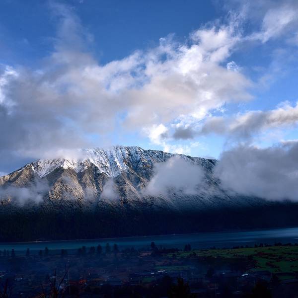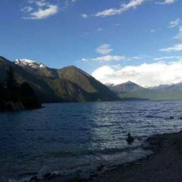 很不错的高山湖泊,远处有雪山,近处有碧水。
