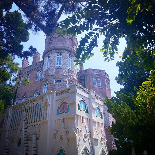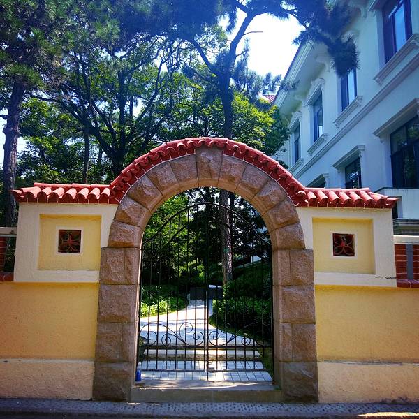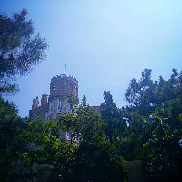 应该也是唯一对外售票参观的景观了吧。贝壳儿只负责在花石楼的花园里晒太阳。古堡里神秘感十足的大门十点多,收拾利落开车出发去八大关。 几年前爱拉去过一次,这次主要是带老妈来看看。八大关里面环境很好,贝壳儿穿的多一点,出去走走也好。