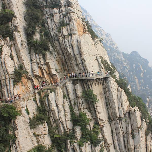 16年初乍暖还寒之时游览中岳嵩山,嵩山最高峰少室山海拔和泰山接近,1500米左右,不管是从少林寺上山,还是后山三皇寨起爬,都没有那种郁郁葱葱的感觉,全程都以褶皱的断裂带突出了险峻和大自然的神奇,有人把这里比喻成小华山。嵩山分为太室山和少室山,爬山推荐三皇寨入口爬,因为人少,景色也更丰富些,全程爬山和游览时间半天足够,最后再从少林寺那里下山,这样是最有效的避开人流的方法,缺点是你没有缆车坐,因为缆车只有少林寺那边有。少林寺的名气不在嵩山之下,其实少林寺得名很简单因为它深藏于少室山下密林中的寺院,故名“少林寺”,名气大,寺院旁边有很多武术学校,单纯少林寺其实没有太多可看的,不过现在嵩山少林景区有武术表演,还有一定的观赏价值,不过也比较商业化不要期望太高。太室山我没有去爬,因为以道教文化景观居多,本人对道观也不太感冒。少室山相比景色丰富一些,经常能见到各种怪石,就是整体上太光秃秃了,缺少绿色,不过这也和嵩山的地质构造有关。我是早上8点多从三皇寨开始爬的,9点半就到顶了,全程没看到一个卖东西的商贩,只碰见了2个驴友,可见这条线路人少得可怜。确实和华山有些神似,可能是季节的原因吧,没有绿色只有枯黄。光秃秃的崖壁,快到少林寺的是还还看到了一群小和尚在嵩山上练舞。从后山下到少林寺的时候人乌泱乌泱突然就多了起来。这张图能稍微感受到嵩高惟岳,峻极于天。说下交通吧,嵩山在登封市,距离洛阳和郑州都是1小时车程,每天早晨从郑州汽车总站每10分钟就一一班发往登封汽车站的班车,交通非常方便。到了汽车站马路外都是出租和摩的去嵩山的,从嵩山去洛阳可以坐过路的班车,路边招手停车,也可以返回汽车站,不过这样就走回头路了浪费时间。