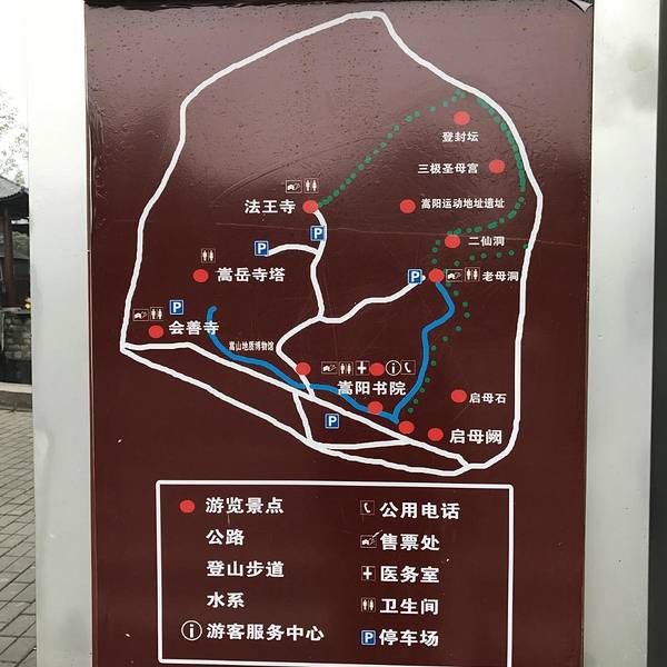 【周边游玩建议】中岳嵩山(太室山)和嵩阳书院靠一起,卢崖瀑布在太室山景区;少林寺、三皇寨在少室山,千万不要搞错,两者景区入口离得较远,所以登嵩山是指嵩阳书院到峻极峰的过程。常规有3条路线可以登顶:1:从嵩阳书院经老母洞、中岳行宫登山步道3小时左右到达峻极峰。然后从大法王寺方向下山(比较好走),也可以从卢涯瀑布方向下山(枯水期瀑布没水不建议走,路程长)。2:从法王寺登山步道约2小时可以到达峻极峰,然后经中岳行宫、老母洞(即沿线路1的登山步道)下山到嵩阳书院。3:从卢涯瀑布方向步道登顶峻极峰(路程太长,不建议此路上山),然后经中岳行宫、老母洞下山。