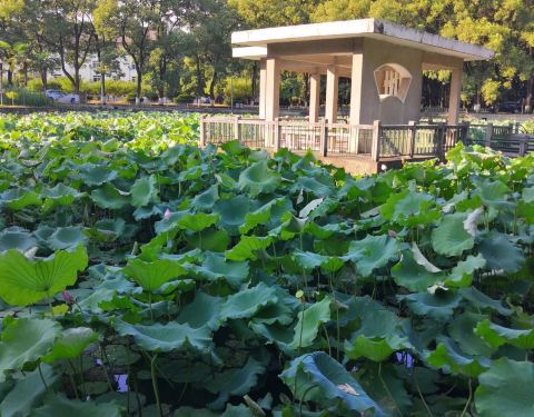 武汉市依托华中科技大学建立的“光谷”科技园区就学校南边。中间一池碧水,覆盖着无穷无尽的莲叶华中大本部位于洪山区喻家山,校园占地将近7000余亩,校内绿化覆盖率72[%],被誉为“森林式大学”。武汉市依托华中科技大学建立的“光谷”科技园区就学校南边。过了光谷广场,从西校门进去,首入眼帘就是一条林荫...华中大本部位于洪山区喻家山,校园占地将近7000余亩,校内绿化覆盖率72[%],被誉为“森林式大学”。武汉市依托华中科技大学建立的“光谷”科技园区就学校南边。过了光谷广场,从西校门进去,首入眼帘就是一条林荫大道。大道两旁,树冠参天,彼此相连,即便炎炎夏日也会顿觉得神清气爽,更别说秋天了,气温起码比武汉市内低2-3度。校园内随处可见粗壮的法国梧桐,树龄大体与华中大同龄,“瑜园的梧桐,年年飞絮成‘雨’说的就是这个情况,中间点缀着叫不出名字的各种灌木。西三、四、五等教学楼就掩盖在这些树木从中,若隐若现。早晨,徜徉在华中大的校园里,看到一条条石板铺就的小路弯弯曲曲从绿荫丛中穿过,忍不住深呼吸几口新鲜空气,感觉肺部都被过滤了。紫金路往南拐就到了主干道——华中路,从计算机学院楼直行约100米,就来到南一楼荷塘。岸边是梳着鞭子的垂柳, 中间一池碧水,覆盖着无穷无尽的莲叶。 展开