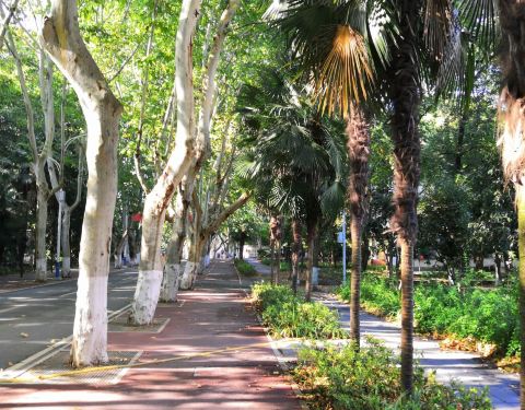 有很多的树木,还有几个小湖,景色还是不错的,非常适合散步乘地铁可以到达华中科技大学,校园非常,难怪被称为“森林大学”。有很多的树木,还有几个小湖,景色还是不错的,非常适合散步。