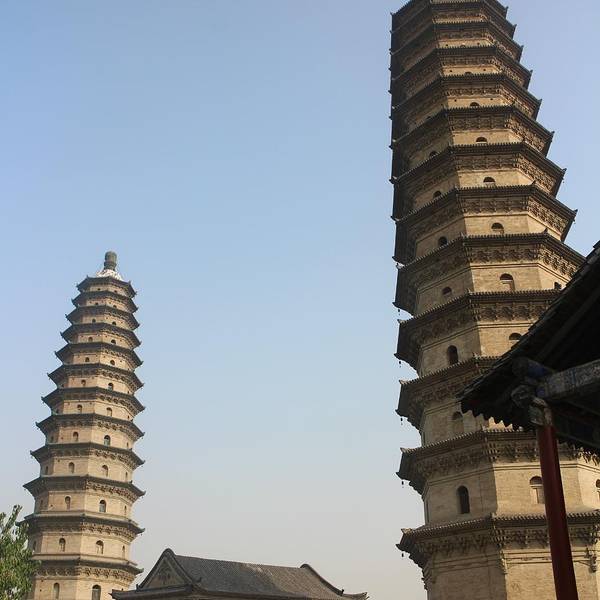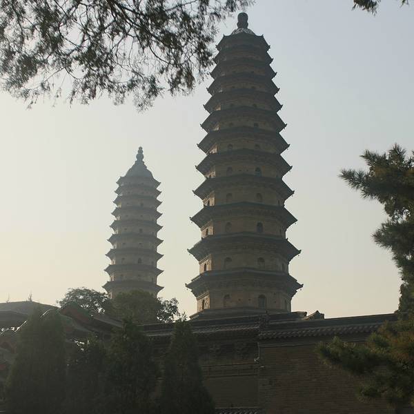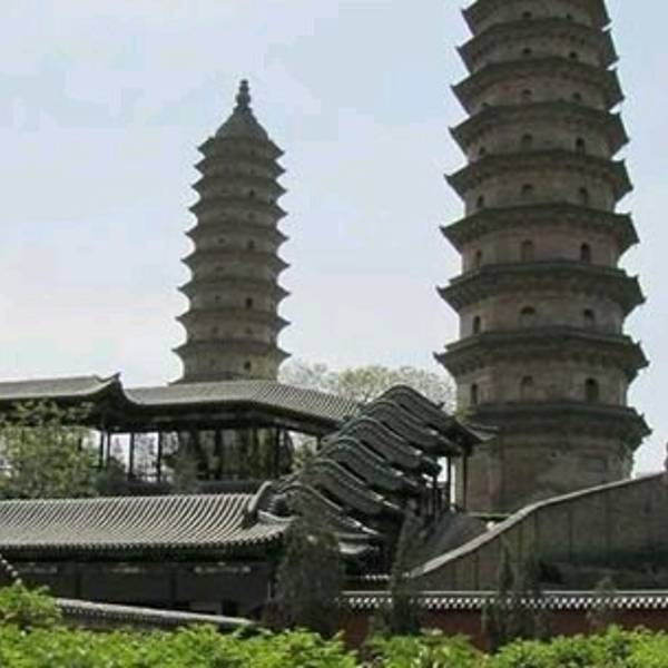 太原南郊的双塔寺,是太原市的标志性建筑,太原市市徽上的主题图案。双塔寺,原名永祚寺,大约始建于明朝万历中期(1597-1602年),因为寺内有两座高塔,所以俗称双塔寺。如今当地人也都习惯称这里为双塔寺,反而对原名比较陌生了。 双塔寺的建筑格局并不复杂,由前院、后院、塔院三部分组成,有名的“双塔”就在塔院里。双塔寺的山门和大多数寺庙坐北朝南是相反的,双塔寺的山门是朝北开的,游客进入山门后,由北向南步行游览,游览过程中,依次能看到大雄宝殿、碑廊和双塔,这三处是寺中较为值得一看的地方。 双塔寺的大雄宝殿,是砖砌的仿木建筑。整座建筑没有梁架,不用一根木头,全由砖砌而成,砖砌雕花精细而大方。当你进入大雄宝殿,可以看到殿中供奉的三世如来像:阿弥陀佛、释迦牟尼和药师如来。其中阿弥陀佛是铜铸立像,而另两尊则是铁质坐像,由此可见,这三尊佛像不是庙里的原配,而是从不同的地方搬来的。 双塔寺的大雄宝殿是二层结构,从大殿东侧,有台阶可以登上二楼。二楼建有“三圣阁”,内供奉着三大士:观音、文殊和普贤,这几尊菩萨像也是从别处寺院搬过来的。如果你五月份来到大雄宝殿,还能欣赏到明代种植的百年牡丹,名字叫做“紫霞仙”,它植根于大雄宝殿前的方形花坛里,在这里盛开了三百多年了。来双塔寺看牡丹,也是太原市民的一大乐趣。 从大雄宝殿通往塔院的途中,有一条通廊,其中有一道“碑廊”,如果你是书法爱好者,那一定要到这里来看看。你可以在这里观赏到碑廊墙上镶嵌着明代的“宝贤堂集古法帖”,清代的“古宝贤堂法帖”和清代所刻的苏东坡醉笔石刻“赤壁怀古”,其中,苏东坡手书的“赤壁怀古”,是乾隆二十七年(1762年),根据拓摹勒上石的。据说此刻全国仅有两处保存,另一在湖北黄州的东坡赤壁。 当你来到寺院南部的塔院时,两座古塔完完整整的映入眼前。两塔都是砖石结构,相距60米,塔上的雕饰清丽、轮廓分明。东南这座先建造(东塔,也叫文峰塔),但不是佛塔,是为了弥补太原城“西北高东南低”不利于文化的发展,而建造的一座“塔”。建成之时起,就略微向西北倾斜。据说是设计者考虑到此塔地处东山前沿,面对着西北风的冲击,特意向西北倾斜,才能保证塔身稳固。 西北这座是后建的佛塔(宣文塔),因为位于西北方位,故也被简称为“西塔”或“北塔”。是由明代万历年间的高僧妙峰大师(福登和尚)监造,因当年塔内藏有佛舍利子,所以又叫做宣文佛塔,或舍利塔。 西塔(宣文塔)在解放战争中大部分毁于战火,如今所见的是上世纪八十年代重新修复的。如果你有兴趣,可以登塔。不过建议不必登塔,因为以当地的空气情况,登上了塔,四周遥望,也是雾蒙蒙一片。