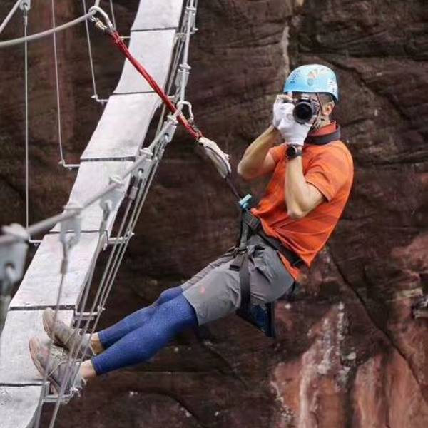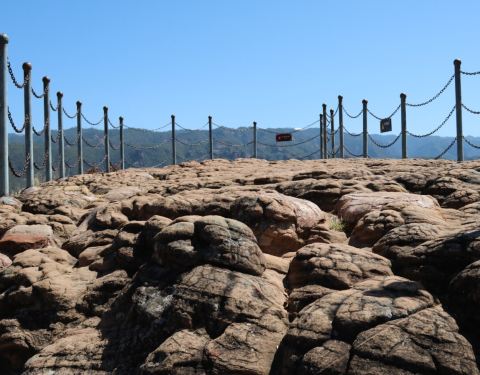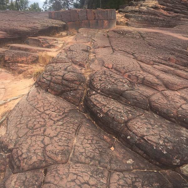 光脚走在圆球如龟背状的红砂岩上,感受踩千龟于脚下的奇特。