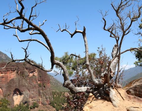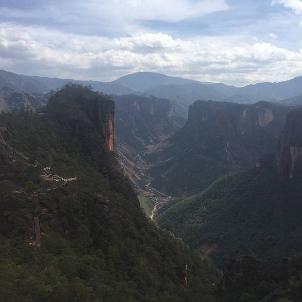 老君山国家公园位于丽江玉龙纳西族自治县,主峰老君山海拔4515米,因相传太上老君曾在此炼丹而得名。公园里有很多丹霞地貌,还有花海、珍惜动物等,住在景区内的黎明村,早起还能观赏奇妙的“太阳三起三落”景观。老君山国家公园地域辽阔,分为四个区域:黎明高山丹霞片区、九十九龙潭片区、格拉丹高山草原片区、金丝厂片区。游玩老君山的较好季节是每年5-6月,这时杜鹃花盛开,一丛丛一簇簇,整个山区变成一片杜鹃花的海洋。黎明高山丹霞片区主要分布在黎明僳僳族乡境内,包括黎明、黎光、美乐、堆美4个村,总面积达250平方公里,是国内面积较大、发育较完整的丹霞地貌。区域内较有名并广为人知的是千龟山。由于红砂岩表面发生干裂,在风化和侵蚀作用下就形成一片有缝隙的凸起,仿佛山坡上一群乌龟在慢慢的爬山,堪称一绝。出于对千龟山地质的保护,攀登千龟山一定要赤足。沿着山间小路前行,除了千龟山,睡佛、五指山、自然佛、炼丹炉等景观也都惟妙惟肖,令人称奇。如果体力一般,也可以从景区门口先乘电瓶车观赏峡谷风光,然后乘索道到山顶参观。如果想细细体会这片壮丽的丹霞风光,建议在黎明村住宿。村里红石街两边都是客栈和餐厅,既有背包客喜欢的青年旅舍,也有民俗客栈和假日酒店,可自行选择。这样,天气好的时候,早起还能观看到奇妙的“太阳一天内三起三落”奇观。至于原因,相信到了现场,目睹了这个奇妙的景观,一切疑惑都可以迎刃而解了。
