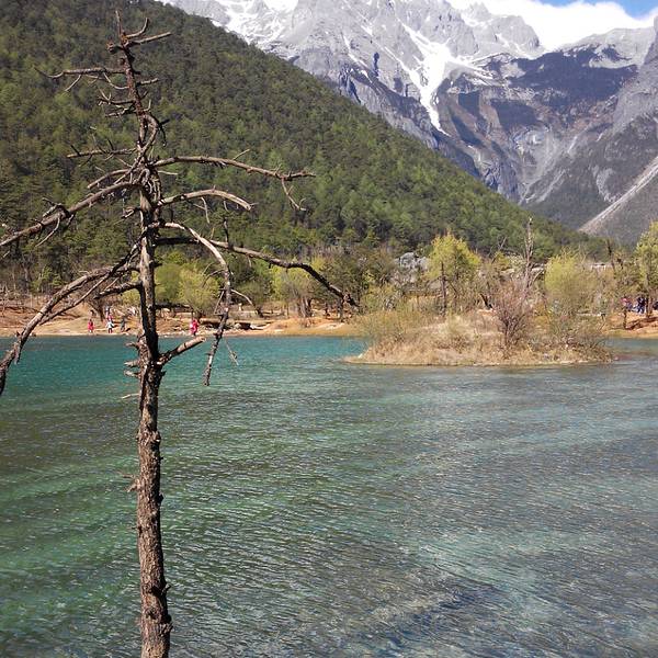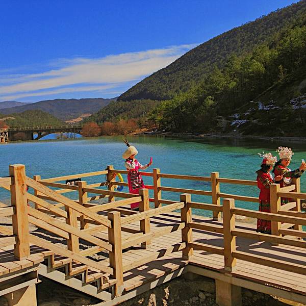 反射蓝色光芒,极美。右边是玉液湖。在蓝月湖可以拍到远处的玉龙雪山。山水相接,色彩相应,加上高原地区澄澈的蓝天和清澈的空气。感受若世外桃源。蓝月谷中的河水在流淌过程中因受山体阻挡,形成了四个较大的水面,人称“玉液”湖、“镜潭”湖、“蓝月”湖和“听涛”湖。在晴天时,水的颜色是蓝色的,而且山谷呈月牙形,远看就像一轮蓝色的月亮镶嵌在玉龙雪山脚下,所以名叫蓝月谷。 展开