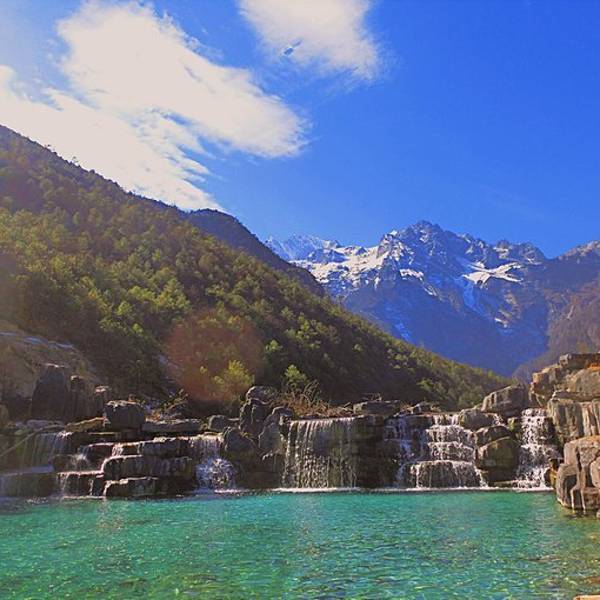 金骆驼 ...顺着峭壁流淌而下,不断汇集为山涧、溪流,最终在蓝月谷上游深谷之中形成了清澈见底、甘冽无比的河流蓝月谷,其前身为早前人们所熟知的“白水河”。在晴天时,水的颜色是蓝色的,而且山谷呈月牙形,远看就像一轮蓝色的月亮镶嵌在玉龙雪山脚下,所以名叫蓝月谷。而白水河这个名字是因为湖底的泥巴是白色的,下雨时...蓝月谷,其前身为早前人们所熟知的“白水河”。在晴天时,水的颜色是蓝色的,而且山谷呈月牙形,远看就像一轮蓝色的月亮镶嵌在玉龙雪山脚下,所以名叫蓝月谷。而白水河这个名字是因为湖底的泥巴是白色的,下雨时水会变成白色,所以又叫白水河。