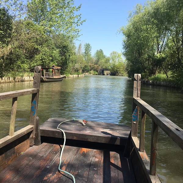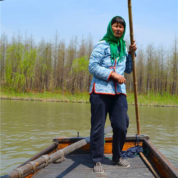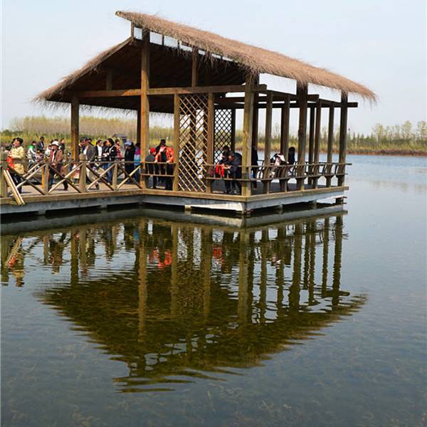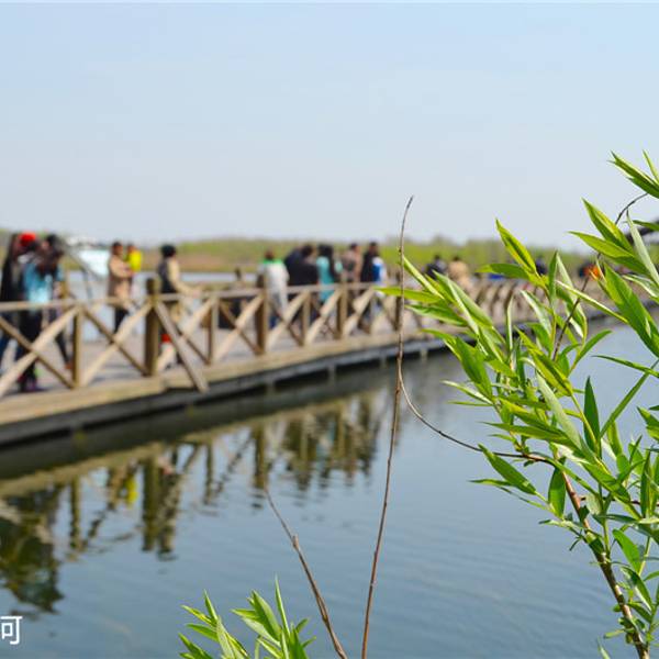 漫步于木头栈道或坐船行于曲折的河道,欣赏水草和芦苇勾画出的优美风光。