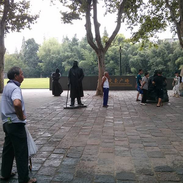 进入公园,已是热闹的景象,好多市民坐在树荫下看书、大牌、打球,跳舞,还有弹电子琴的,顺着花间小路,眼眼帘是一片波光粼粼的湖水,湖面泛着一叶小舟,青年男女相依相偎,荡漾的心像湖水一样清澈明亮,过桥是公园的游客中心,拿一张地图按指引来到梅园,这里曾经是尹奉吉义举地方,建立了梅亭,从梅亭下来向公园的体育园走去,还有一条塑胶健身步道,许多居民在打球健身,公园东侧有一排雕塑,那是“世界文豪广场”的名人塑像,数了一下,共有十座大文豪全身雕像,分别有普希金、托尔斯泰、狄更斯、歌德、巴尔扎克、莎士比亚、但丁、雨果、泰戈尔和高尔基。奇怪,怎么没有鲁迅,百思不解?在草地一侧有一座江南民房风格的白墙黑瓦建筑,这就是新中国第一座人物类纪念馆,鲁迅纪念馆,收藏了文物8万余件及鲁迅先生的手稿、衣物、生活用品,以及众多珍贵的照片,值得一看。在“世界文豪广场”对面的空地上,搭起了书摊大棚,里面售卖着少儿读物,继续往前,有一块绿草茵茵,遍植松柏香樟地方,这儿就是文学巨匠鲁迅先生的安息地,墓前铺有天鹅绒草皮,四周围绿树成荫,鲁迅坐像高高耸立,墓穴左右各有一棵桧柏,据说是鲁迅夫人许广平和儿子周海婴所植的。在这静静地沉思,怀念这位文学巨匠。【门票】无需门票,免费游览