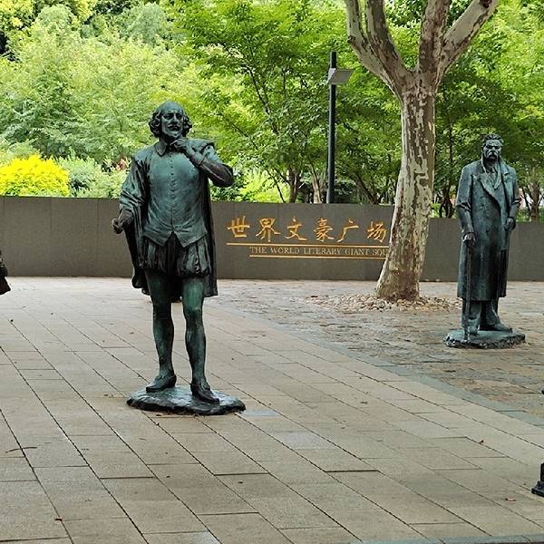 世界文豪广场矗立着多位文学大师的雕像供众人瞻仰。