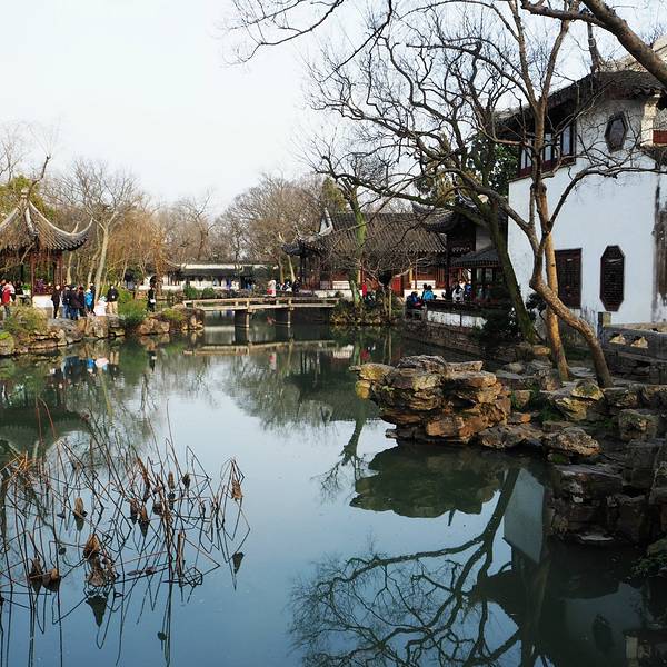 关于门票,需要提醒一下,不要相信路边的黄牛,所谓手里有低价票的绝对不是天上掉的馅饼。淡季门票70元,学生证等有效证件可以半价。售票窗口附件有很多导游,可以视情况而请,事先说好价格。在苏州众多的园林中,拙政园是规模最大的一座,占地达到七十八亩。始建于明正德四年,距今已有五百多年。拙政园分为东中西三大部分,西侧与中间部分大多是晚清遗留至今的古建筑,东侧以水体为主,偶见几处小亭,也许是季节的原因,东侧花园的小湖显得不那么清澈,相比中西侧未免逊色。西侧与中间部分的花园原来是太平天国忠王府的一部分,在此之前明代的遗迹已难寻踪迹,因为历史的原因拙政园的主人一再变化。现存大部分都已进行了较多的修缮,有了很多现代痕迹。拙政园的一大特点在于水体面积的丰富,东侧的小湖泊面积几乎可以抵上别的园子,这是其他几处园林不具备的。每年春夏两季,拙政园会举办杜鹃花与荷花展览,但可惜我的这时候是冬季,园内的荷花早已枯败,杜鹃也还没有开放,唯一植被繁盛的地方,就是在盆景园了。即使是淡季,拙政园的游客依然很多,这样一来拍照自然很难把握好;只有临近闭园时,园内的游客才会逐渐减少,留出拍摄的空间。相比较与东侧,西侧的游客也更少一些。尽管拙政园的名声十分响亮,但实地游览的感觉却未必能有“最是苏州好园林”的感觉,不免有些遗憾。