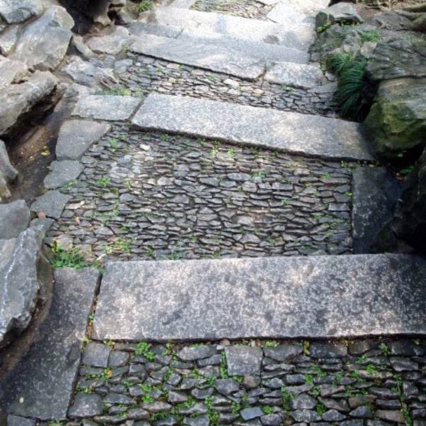 苏州园林以造景游赏为目的,用土堆山,以石构山。石构假山技法字诀为,安连接斗挎(跨),拼悬卡剑垂,挑飘飞戗挂,钉担钩榫扎,填补缝垫杀,搭靠转换压。