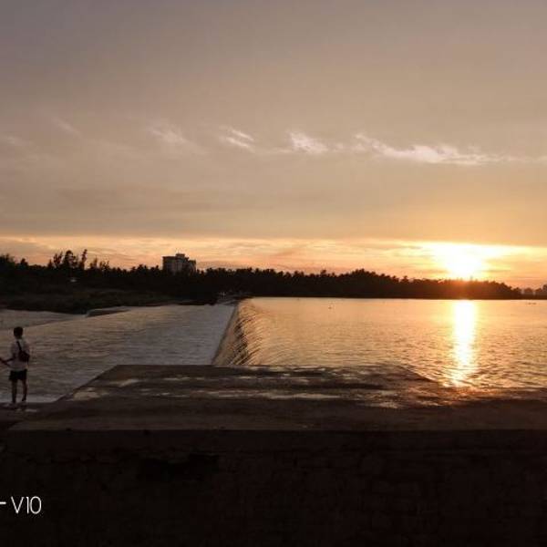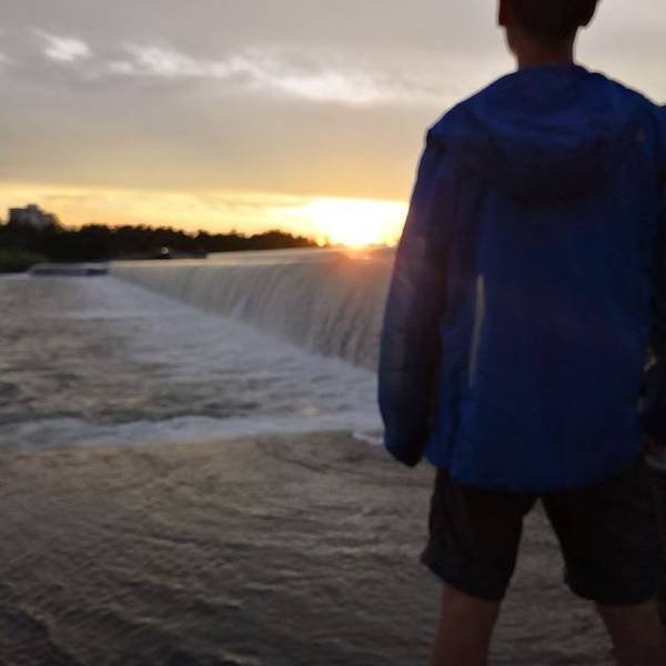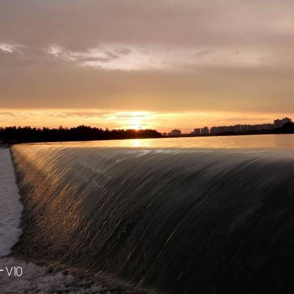 路过万泉河,车子一拐弯,一抹金光直射过来,日落!太美了,夕阳洒在万泉河河面上,反射出一缕近光,人们在河中游泳,岸边都是欣赏夕阳的人们,岁月静好!