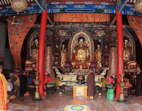 海宝塔寺坐西朝东,寺内殿字主要有山门、接引佛殿、大佛殿、韦陀殿、卧佛殿等,都在一条东西向的中轴线上。海宝塔是建在大佛殿和韦陀殿之间,塔9层11级,通高45米,数里之外就能看见巍然矗立的塔顶,使这座塞上古...