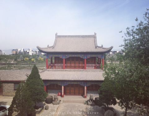 海宝塔是建在大佛殿和韦陀殿之间的,登上塔基,绕过塔身,通过廊桥,可以到达后院。宝塔上悬着铜铃铛,被风吹过,发出好听的响声,不由得就要幻想,如果能攀到塔顶,一定可以远眺巍峨的贺兰山,观览整个银川平原。