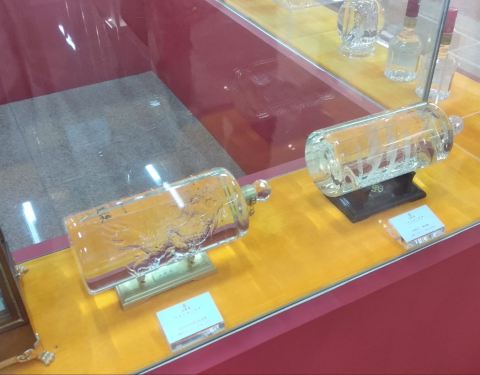 了解五粮液的历史和传统酒文化,这里有许多具有独特造型的瓶装五粮液,还有各种材质的饮酒器具。