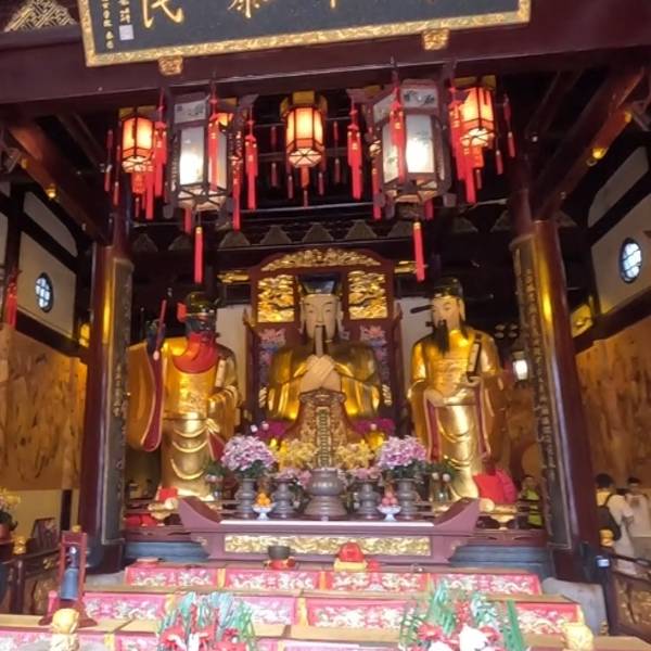 霍光殿:是上海城隍庙的第一大殿,供奉金山神主霍光,左首为文判官,右首为武判官。