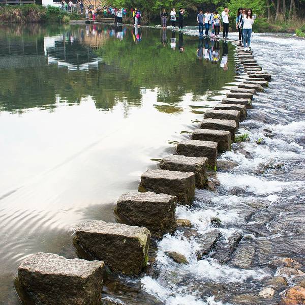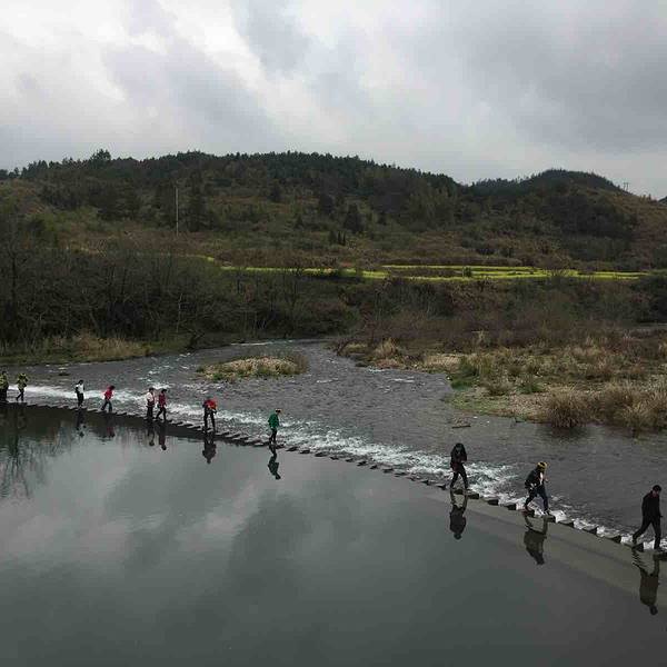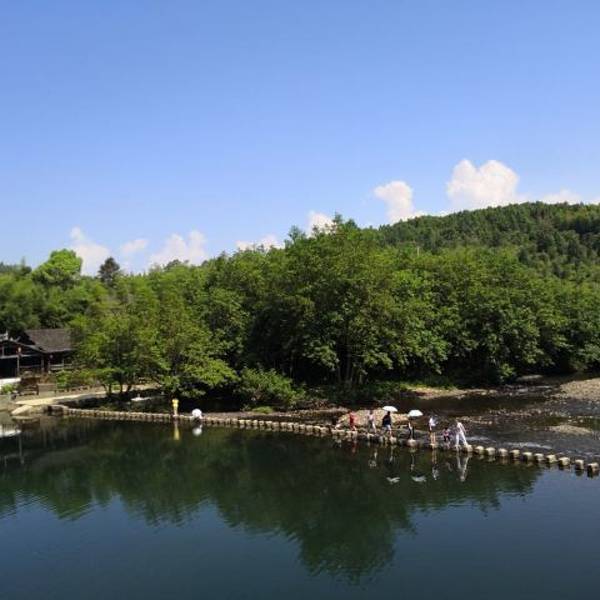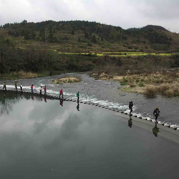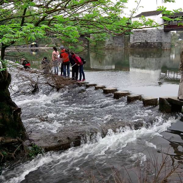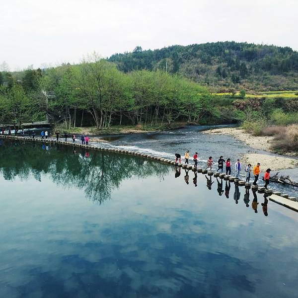 2、桥北侧有过江的小石墩,从石墩上一步一步跳过江区,越到后面石墩之间的间隙越大,使人不得不小心翼翼起来,很刺激。不过石墩旁边没有任何安保措施,虽说有工作人员监管指挥,但是保障能力有限。有心脏病的游客以及老人,就不建议从这里过江了。另外,站在彩虹桥上,从桥上拍下去,人在江中的倒影汇聚在大自然里,画风非常的美,是个拍照的好地方。 展开