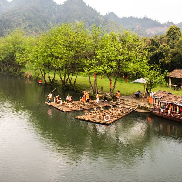 3.可以感受一下竹排飘荡在水中的感觉,门票不含竹排的价格,如果想要坐要自己掏钱,20块一人,时间的话没有特别久,也就绕着那条大河一圈,值不值得话因人而异吧。 展开