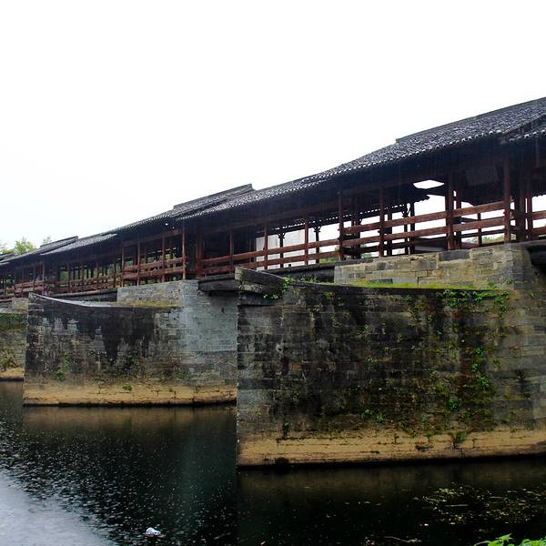 彩虹桥,是古徽州最古老、最长的廊桥,被众多媒体誉为“中国最美的廊桥之一”。 彩虹桥的魅力,不仅在于桥体与青山、碧水、古村、驿道的完美结合,而且更重要的体现在建造的生命力:科学合理的选择了建桥的地理位置——建在最宽的河面上。