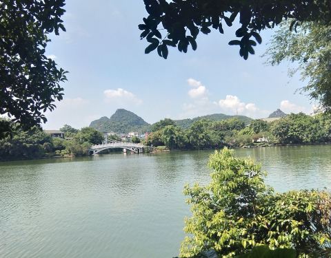 看迂回曲折的玉带萦绕在桂林山水之间,两岸也是古迹悠悠。