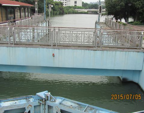 桃花江是桂林市两江四湖游其中之一,它比四湖水位低,这次碰上桂林市下雨,江水上涨,将文昌阁码头都淹没了,影响了两江四湖夜游,去时看到工作人员正冲洗码头。从文昌阁码头坐船要经过船闸才能进入四湖景区,白...