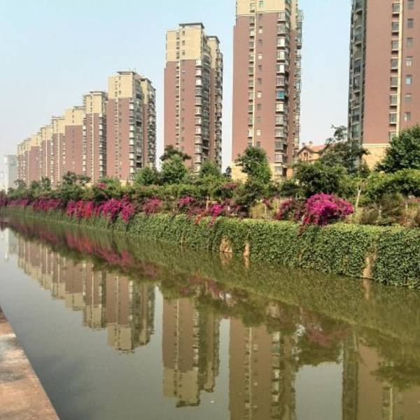 小路就在河边,一路生活气息,各种小店,单位,幼儿园。河对面是整洁的商品楼房。