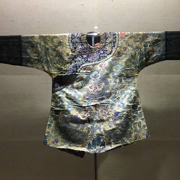 T字交界的另一侧,即:偏右侧是关于朝服和圣旨的特展,主办方是徐州的圣旨博物馆(圣旨博物馆在龟山汉墓景区内,这个馆内朝服占了很大比重,也许从数量上不比圣旨多很多,但是朝服占地方嘛,所占的展柜的面积远大于圣旨部分,圣旨部分大概只有1、2个展柜的地方;而朝服占了好几排展柜。)
