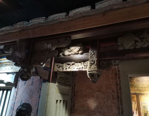博物馆的一层整体呈T字型,检票处是T字最下边的尾巴这部分,在T字上面那道横杠两侧的走廊里,也就是卫生间旁边的走廊里,也有展品,是木质的、带有雕刻的窗户。