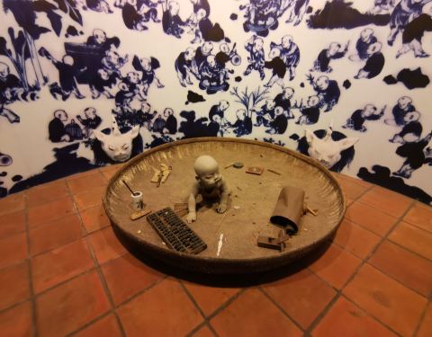 一层T字横、竖交界的地方,就是大门正对着的偏左方(游客进门后游客的左手侧)是个唐三彩的特展。