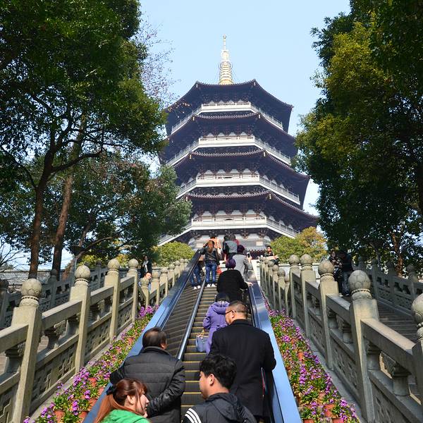 我来的这个季节属于西湖自然风光最为衰败的季节,但是好在雷峰塔不会随着季节而变化,风吹雨打他一直矗立岸边,而且避开了高峰期游人较少不需要大排长队还能更好的游览。买票进门,需要上很长的一段楼梯,很贴心的,设置了上行的扶手电梯,省去了许多体力。到达雷峰塔脚下,先进入现在的塔内,参观已倒塌的被保护起来的雷峰塔旧址,只剩下一些土堆上的砖堆和散落的砖块,全然看不出故事中的影子,只剩一片破败,地上银光闪闪的都是游人投下的硬币,转了一圈只觉得索然无味。上到塔身中部,有两部需要排队上楼的直梯,效率就低多了,好在这个时候人不算多,我只等了两三分钟就上去了,直接上到最顶层,可以一览西湖全景,然后一层一层步行下来游览,最高处的视野还是很好的,只可惜空气质量不佳,拍出来的景色效果不是很好。 展开