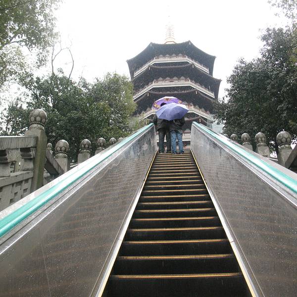 金骆驼 如果遇到阴雨天气,视线影响比较大,感觉云里雾里,西湖呈现一派仙境的景象,高处不胜寒如今的雷峰塔已然失去了古代的韵味,只是现代化的新建而已,包括从景点门口进去就有电梯上去,而要到塔顶也是电梯直达!因此建议没有必要浪费时间浪费门票进去参观,找个合适的角度观赏留影即可。